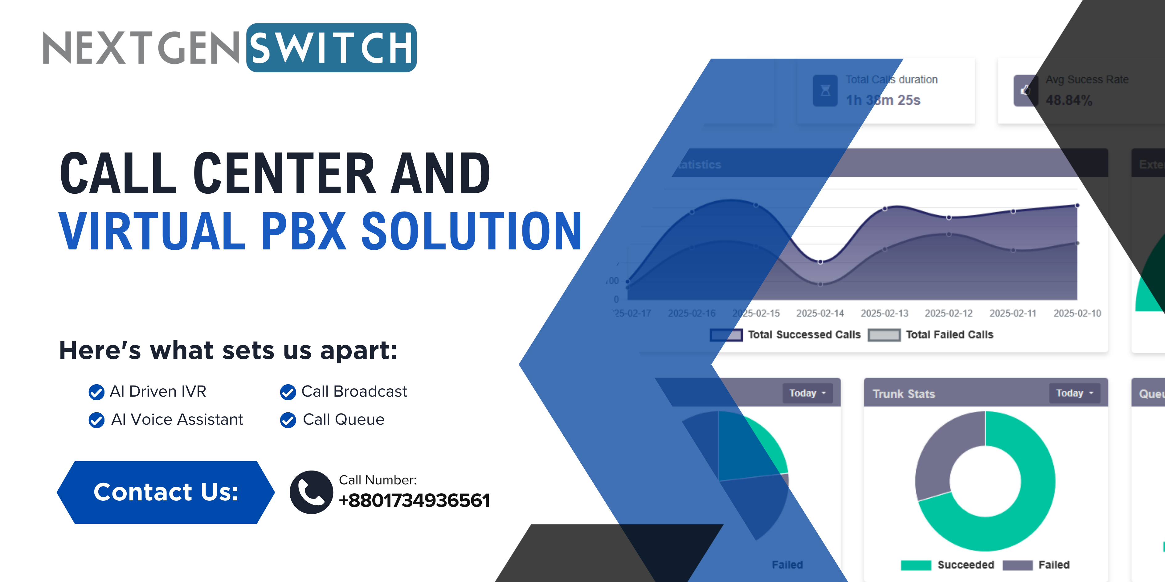 All-in-One Solution: NextGenSwitch integrates PBX, Call Center, and Call Campaign solutions into a single platform, providing businesses with a comprehensive suite of communication tools to streamline operations and enhance productivity.